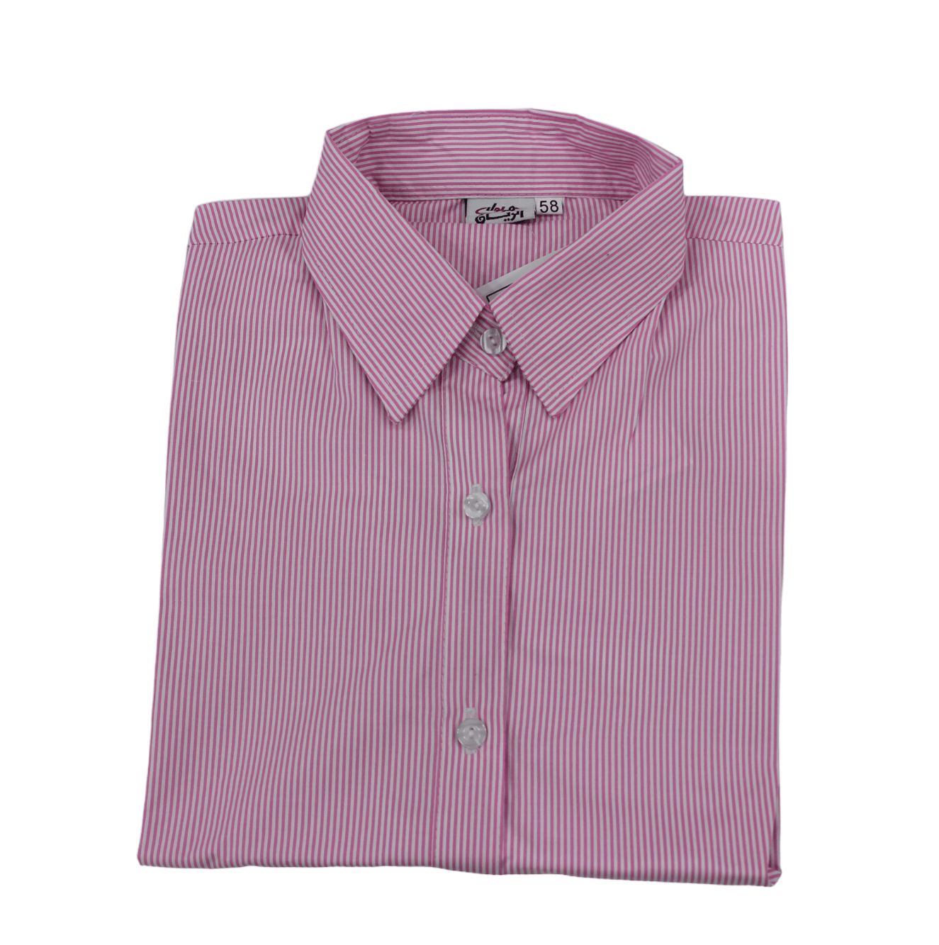 بلوزة زهري مقلم للمرحلة المتوسطة والثانوية بتصميم عصري أنيق وخامة قماش فاخرة وناعمة على الجسم.